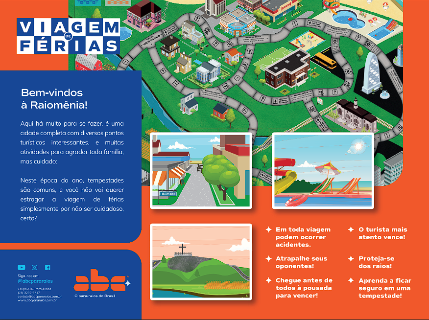 Brasil, líder mundial em descargas atmosféricas, enfrenta um aumento significativo na incidência de raios. Com o compromisso de promover segurança e conhecimento, a ABC Para-Raios apresenta o “Viagem de Férias” – o primeiro jogo de tabuleiro do Brasil que ensina como se proteger dos raios de maneira lúdica e interativa.